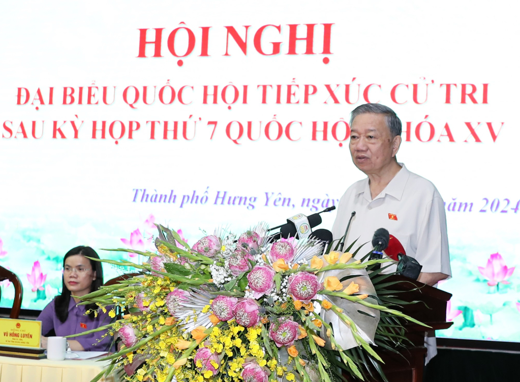 Chủ tịch nước Tô Lâm thông tin tới cử tri, Nhân dân về những kết quả phát triển kinh tế - xã hội nổi bật của đất nước. Trong bối cảnh còn nhiều khó khăn, thách thức, song dưới sự lãnh đạo của Đảng, sự vào cuộc tích cực của cả hệ thống chính trị, trong đó có tỉnh Hưng Yên, đất nước ta đã đạt được những kết quả khá toàn diện trên tất cả các lĩnh vực, tiếp tục tạo tiền đề vững chắc để thực hiện thắng lợi các nhiệm vụ, mục tiêu đề ra…