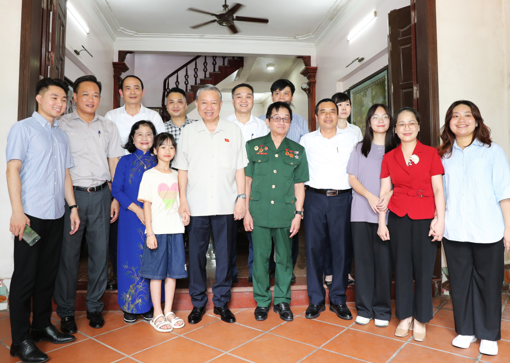 Chủ tịch nước Tô Lâm và các đại biểu với gia đình ông Nguyễn Quốc Sông