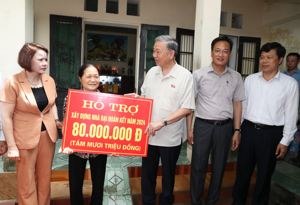 Chủ tịch nước Tô Lâm đã đến thăm, tặng quà gia đình thương binh Nguyễn Quốc Sông ở phường Lê Lợi; thăm, tặng quà và trao kinh phí hỗ trợ trị giá 80 triệu đồng để xây nhà Đại đoàn kết tặng gia đình bà Phạm Thị Cậy là hộ nghèo ở phường Quang Trung (thành phố Hưng Yên).