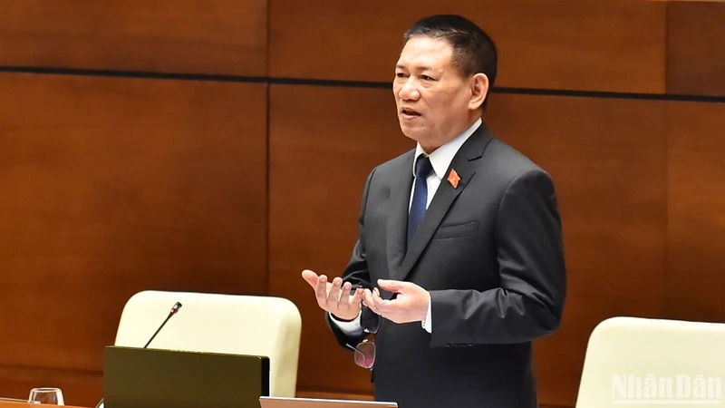 Bộ trưởng Tài chính Hồ Đức Phớc giải trình tại phiên làm việc sáng 7/6. (Ảnh: THỦY NGUYÊN)
