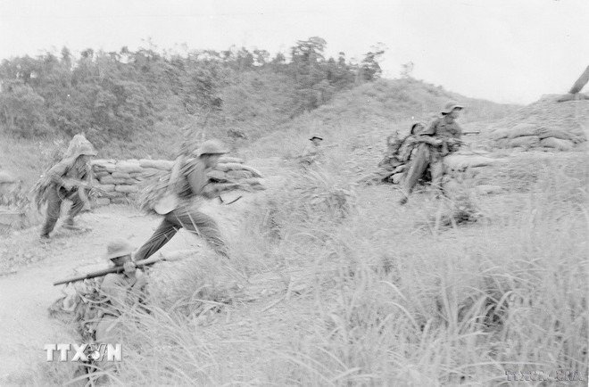 Đại đội 3, Tiểu đoàn 7 quân Giải phóng Trị Thiên luyện tập tiến công địch trong công sự. (Ảnh: TTXVN)