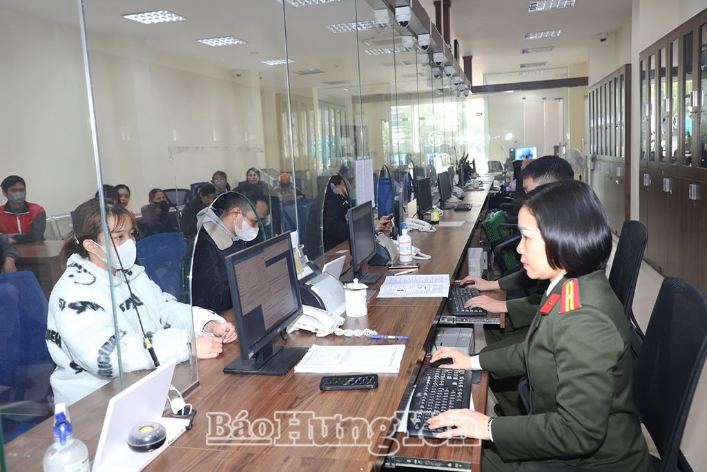 Công an xã Hải Thắng (Tiên Lữ) tiếp nhận hồ sơ giải quyết thủ tục hành chính cho người dân