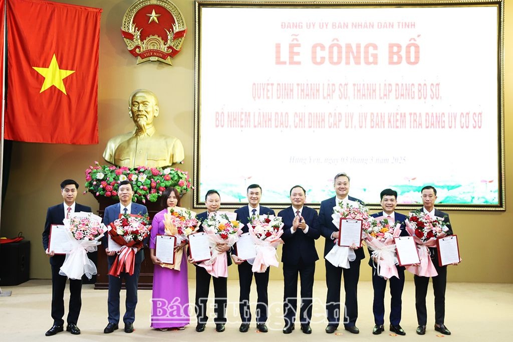 Tại buổi lễ đã công bố Quyết định của Ban Chấp hành đảng bộ UBND tỉnh thành lập các cơ quan chuyên trách tham mưu, giúp việc Đảng ủy UBND tỉnh gồm: Ban Tổ chức Đảng ủy UBND tỉnh; cơ quan Ủy ban Kiểm tra Đảng ủy UBND tỉnh; Ban Tuyên giáo và Dân vận Đảng ủy UBND tỉnh; Văn phòng Đảng ủy UBND tỉnh. Công bố Quyết định của Ban Thường vụ Tỉnh ủy chỉ định Ủy ban kiểm tra, chủ nhiệm, phó chủ nhiệm Ủy ban Kiểm tra Đảng ủy UBND tỉnh nhiệm kỳ 2020 – 2025. Công bố các quyết định của Ban Thường vụ Đảng ủy UBND tỉnh thành lập Đảng bộ Sở Khoa học và Công nghệ, Đảng bộ Sở Nông nghiệp và Môi trường, Đảng bộ Sở Nội vụ, Đảng bộ Sở Xây dựng, Đảng bộ Sở Tài chính; chỉ định Ban Chấp hành, Ban Thường vụ, bí thư, phó bí thư, Ủy ban kiểm tra, chủ nhiệm và phó chủ nhiệm Ủy ban kiểm tra đảng ủy của các đảng bộ sở mới thành lập.