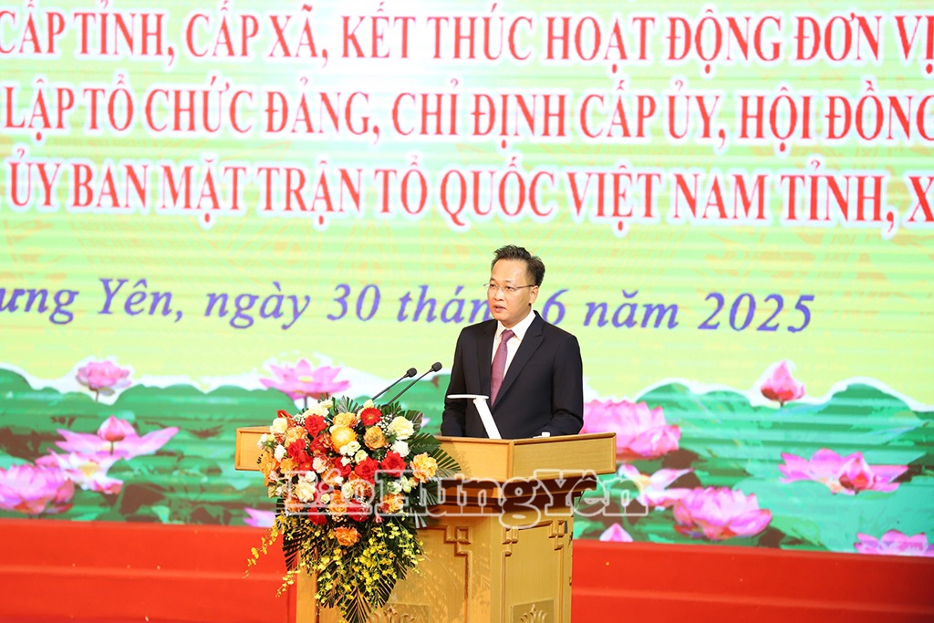 Ngày 30/6, tại Trung tâm Thông tin - Hội nghị tỉnh diễn ra lễ công bố Nghị quyết, quyết định của trung ương và địa phương về sắp xếp đơn vị hành chính (ĐVHC) cấp tỉnh, cấp xã; kết thúc hoạt động ĐVHC cấp huyện; thành lập tổ chức Đảng; chỉ định cấp ủy, HĐND, UBND, Ủy ban MTTQ Việt Nam tỉnh, xã, phường. Lễ công bố được tổ chức theo hình thức trực tiếp kết hợp trực tuyến từ điểm cầu tỉnh đến điểm cầu các xã, phường trong toàn tỉnh.