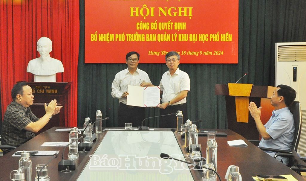 Ngày 18/9, Ban Quản lý khu Đại học phố Hiến tổ chức hội nghị công bố Quyết định bổ nhiệm Phó Trưởng Ban Quản lý khu Đại học Phố Hiến. Dự hội nghị có đồng chí Nguyễn Duy Hưng, Phó Chủ tịch UBND tỉnh.
