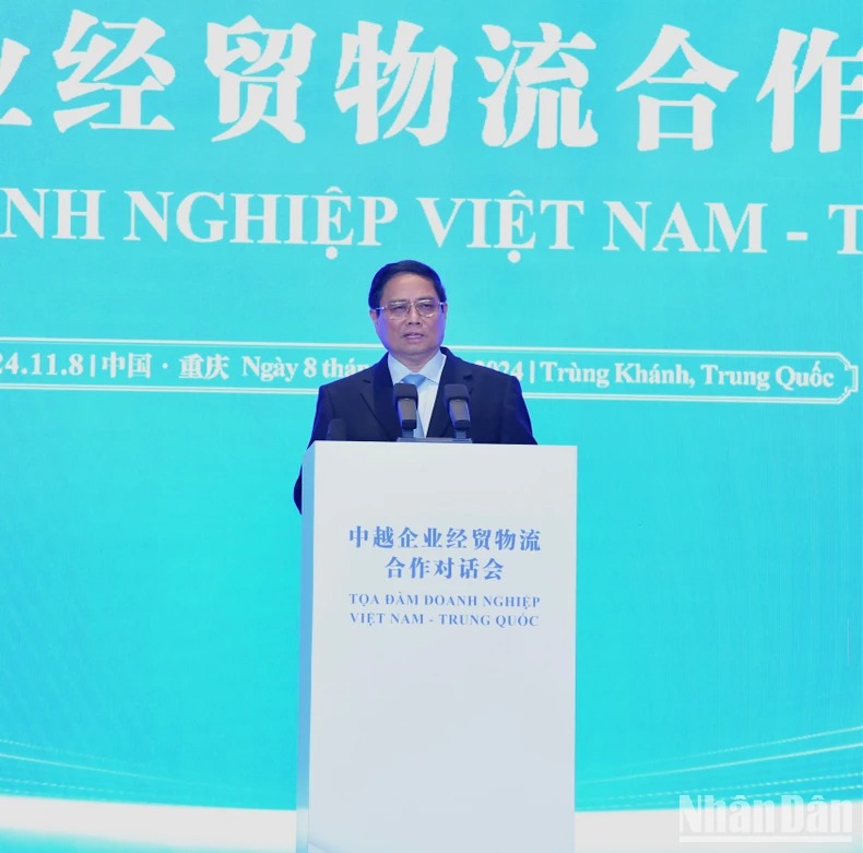 Sáng 8/11, nhân chuyến công tác tại Trung Quốc, Thủ tướng Phạm Minh Chính dự Tọa đàm Doanh nghiệp Việt Nam-Trung Quốc. Cùng dự có đại diện lãnh đạo các bộ, ngành Việt Nam; đồng chí Hồ Hoành Hoa, Phó Bí thư Thành ủy, Thị trưởng thành phố Trùng Khánh, Trung Quốc.