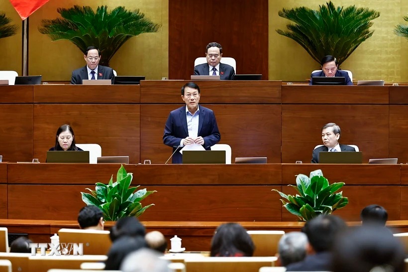 Tổng Thanh tra Chính phủ Đoàn Hồng Phong, thừa ủy quyền của Thủ tướng Chính phủ trình bày Báo cáo về công tác phòng, chống tham nhũng năm 2024. (Ảnh: Doãn Tấn/TTXVN)