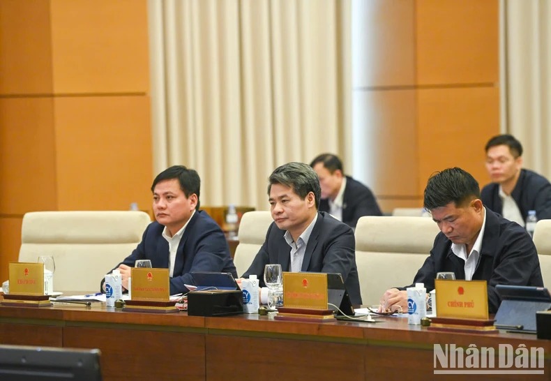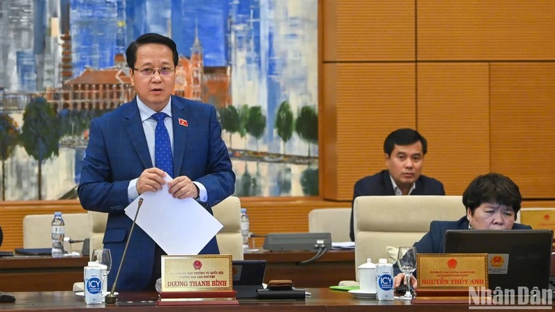Phó Trưởng Ban Dân nguyện Hoàng Anh Công báo cáo tại phiên họp. (Ảnh: DUY LINH)