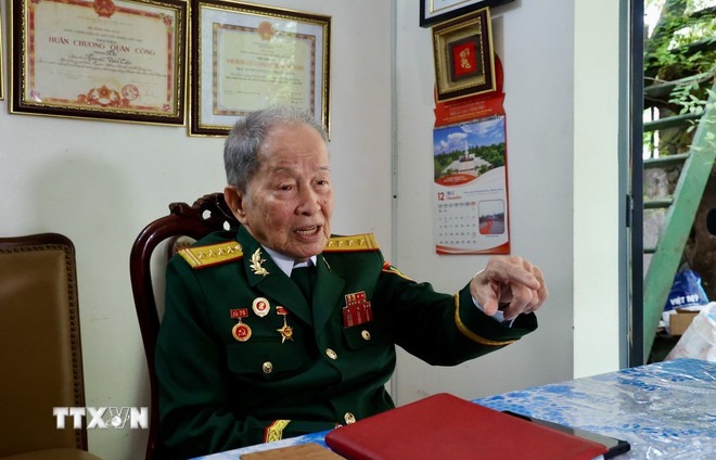Đại tá, Anh hùng Lực lượng vũ trang nhân dân Nguyễn Văn Tàu (bí danh Tư Cang, sinh năm 1928 tại tỉnh Bà Rịa- Vũng Tàu), nguyên Chính ủy Lữ đoàn 316 Đặc công-Biệt động kể lại trận đánh tại cầu Rạch Chiếc. (Ảnh: Hồng Giang/TTXVN)