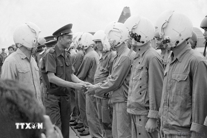 Phó Thủ tướng, Bộ trưởng Bộ Quốc phòng Lào Khamtay Siphandone thăm Bộ tư lệnh Quân khu 7 và thăm Sân bay Biên Hòa (1977). (Ảnh: Hứa Kiểm/TTXVN)
