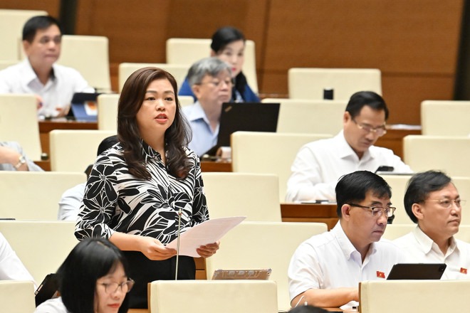 Đại biểu Đoàn Thị Lê An phát biểu ý kiến tại hội trường Quốc hội. (Ảnh: quochoi.vn)