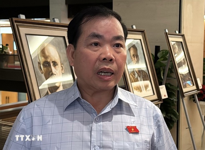 Đại biểu Nguyễn Quang Huân (đoàn Bình Dương) trả lời phỏng vấn. (Ảnh: Hải Ngọc/TTXVN)