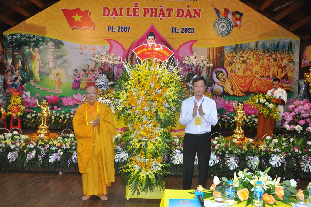 Tại buổi lễ, lãnh đạo tỉnh và lãnh đạo các ngành, địa phương tặng hoa, dâng hương mừng Đại lễ Phật đản và cử hành nghi lễ tắm Phật.