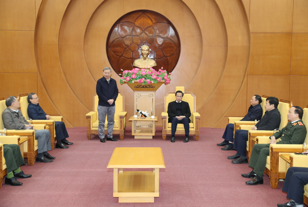 Ngày 26/1, Đoàn công tác của Trung ương do Đại tướng Tô Lâm, Ủy viên Bộ Chính trị, Bộ trưởng Bộ Công an làm Trưởng đoàn đã có buổi làm việc với Ban Thường vụ Tỉnh ủy. Tham gia đoàn công tác có đồng chí Đỗ Tiến Sỹ, Ủy viên BCH Trung ương Đảng, Tổng Giám đốc Đài Tiếng nói Việt Nam.