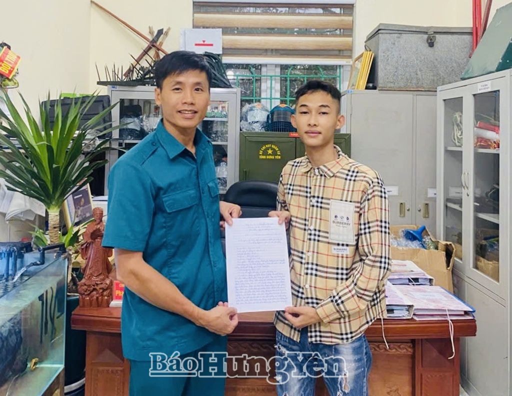 Thanh niên Đào Thế Anh, xã Phú Cường (thành phố Hưng Yên) nộp đơn tình nguyện thực hiện NVQS