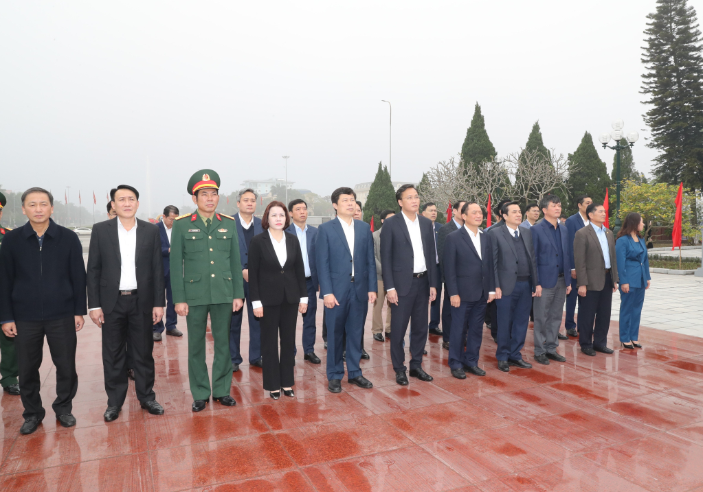 Tại Đài tưởng niệm các anh hùng liệt sĩ tỉnh, các đồng chí lãnh đạo tỉnh kính cẩn nghiêng mình trước anh linh các anh hùng liệt sĩ, những người đã hy sinh vì sự nghiệp giải phóng dân tộc, thống nhất đất nước.