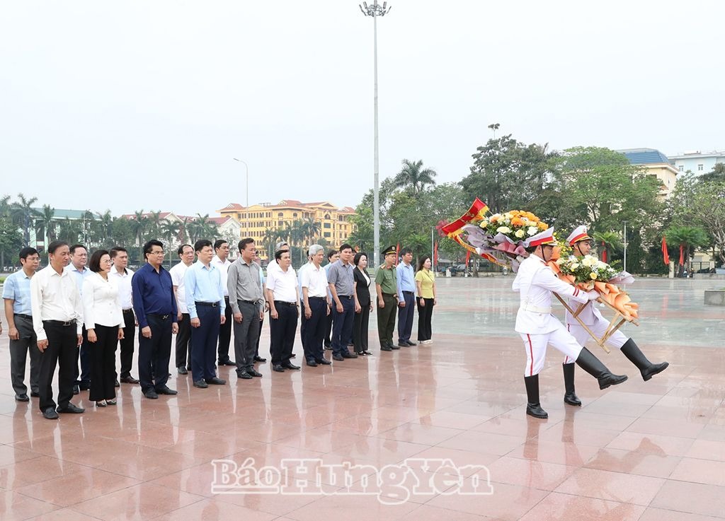 Tại Đài tưởng niệm các anh hùng liệt sĩ tỉnh, các đồng chí lãnh đạo tỉnh kính cẩn nghiêng mình trước anh linh các anh hùng liệt sĩ, những người đã anh dũng chiến đấu, hy sinh vì sự nghiệp giải phóng dân tộc, thống nhất đất nước.