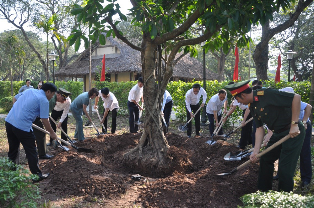Các đại biểu trồng cây lưu niệm tại Nhà lưu niệm Bác Hồ