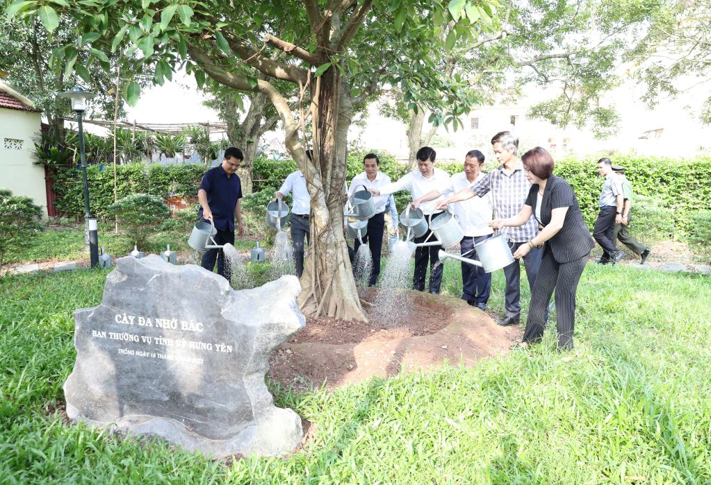 Các đại biểu chăm sóc “Cây đa nhớ Bác” trong khuôn viên Nhà lưu niệm Bác Hồ