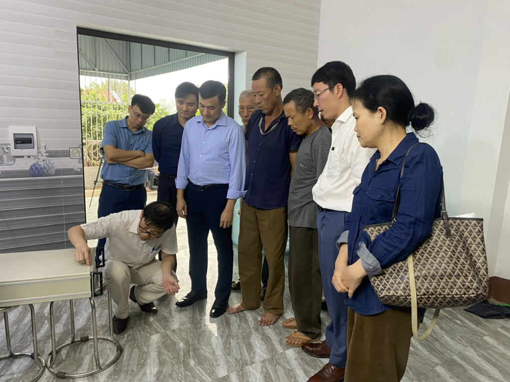 Các đại biểu tham quan mô hình hệ thống lọc chuyên biệt loại bỏ H2S từ hầm khí biogas để phát điện tại xã Phú Cường (thành phố Hưng Yên)