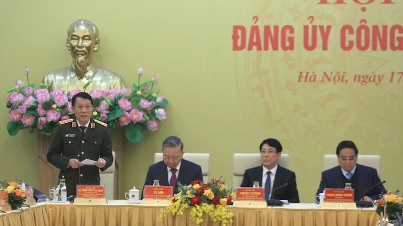 Tổng Bí thư Tô Lâm tin tưởng: Với truyền thống đoàn kết, ý chí, bản lĩnh vững vàng và tinh thần dám nghĩ, dám nói, dám làm, dám chịu trách nhiệm, các đồng chí nhất định sẽ hoàn thành xuất sắc chương trình công tác năm 2025; thi đua lập nhiều thành tích, chiến công chào mừng các ngày lễ, kỷ niệm lớn của đất nước trong năm 2025 và 80 năm Ngày truyền thống Công an nhân dân Việt Nam.