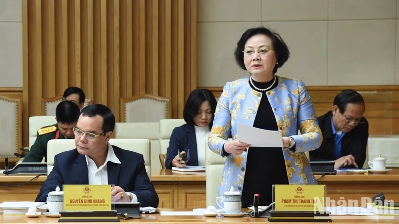 Bộ trưởng Nội vụ Phạm Thị Thanh Trà báo cáo tại phiên họp. (Ảnh: TRẦN HẢI)