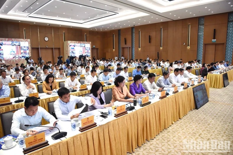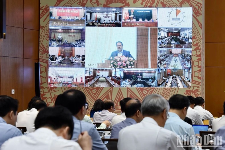 Đồng chủ trì có các Phó Thủ tướng Chính phủ Lê Minh Khái, Trần Hồng Hà và Lê Thành Long; Phó Chủ tịch Quốc hội Nguyễn Khắc Định; đại diện lãnh đạo các bộ, ban, ngành, cơ quan Trung ương; điểm cầu trực tuyến Ủy ban nhân dân các tỉnh, thành phố trực thuộc Trung ương.