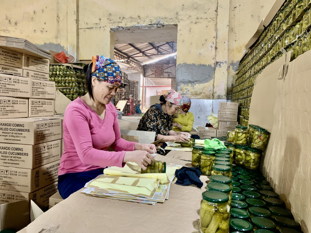 Công nhân sản xuất sản phẩm Dưa chuột đóng lọ tại Công ty TNHH Thành Yên,