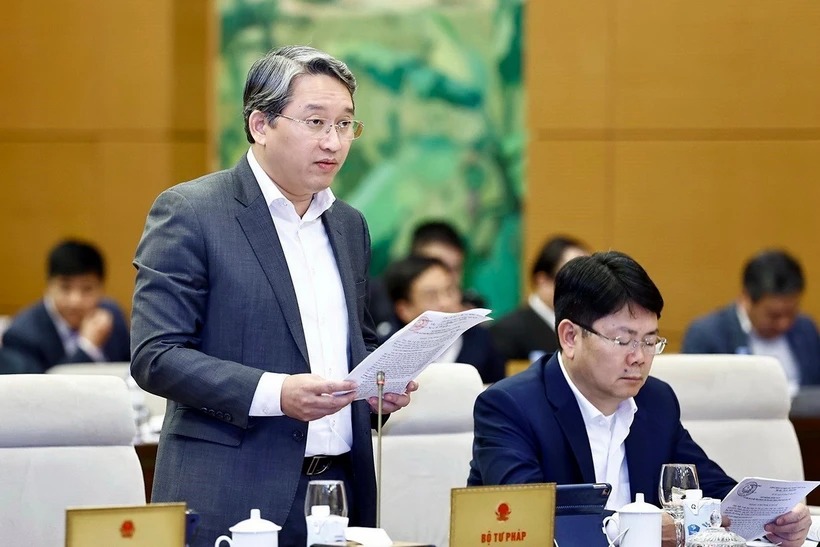 Bộ trưởng Bộ Tư pháp Nguyễn Hải Ninh phát biểu. (Ảnh: Doãn Tấn/TTXVN)