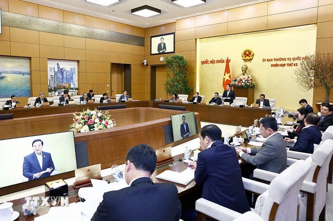Chiều 5/2, tiếp tục chương trình phiên họp thứ 42, Ủy ban Thường vụ Quốc hội cho ý kiến về Dự thảo Nghị quyết của Quốc hội quy định về xử lý một số vấn đề liên quan đến sắp xếp tổ chức bộ máy nhà nước.