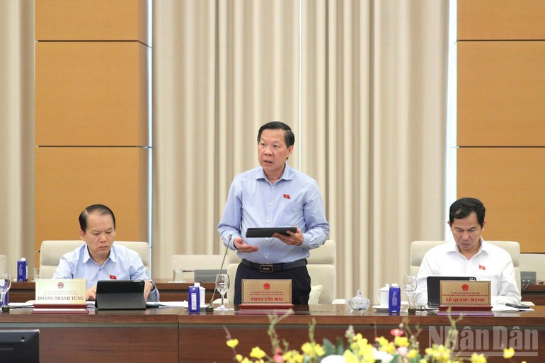 Chủ nhiệm Ủy ban Kinh tế và Tài chính Phan Văn Mãi báo cáo tại phiên họp. (Ảnh: DUY LINH)