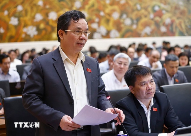 Đại biểu Quốc hội thành phố Hà Nội Hoàng Văn Cường phát biểu ý kiến. (Ảnh: Doãn Tấn/TTXVN)