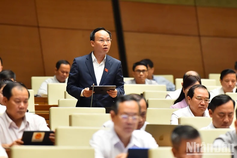 Đại biểu Hà Phước Thắng nêu quan điểm về sự cần thiết phải bổ sung cho phép khai thác, sử dụng gầm cầu làm bãi đỗ xe. (Ảnh: THỦY NGUYÊN).