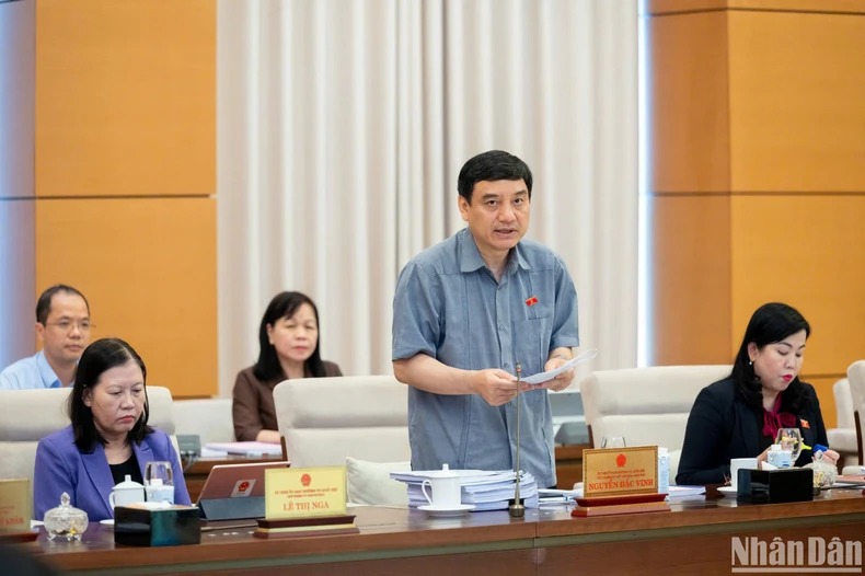 Chủ nhiệm Ủy ban Văn hóa, Giáo dục của Quốc hội Nguyễn Đắc Vinh trình bày báo cáo thẩm tra. (Ảnh: DUY LINH)