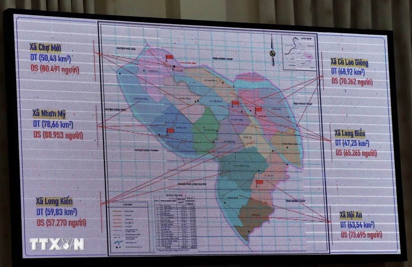 Phương án sắp xếp đơn vị hành chính cấp xã trên địa bàn huyện Chợ Mới, tỉnh An Giang. (Ảnh: Thanh Sang/TTXVN)
