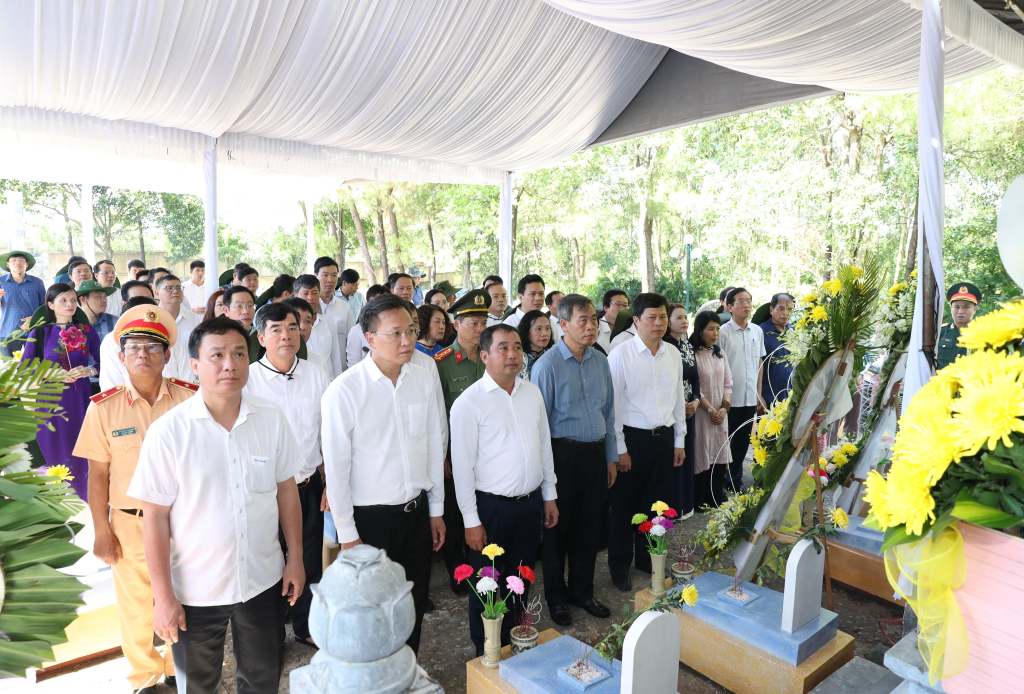 Đồng chí Bí thư Tỉnh ủy Nguyễn Hữu Nghĩa và các thành viên đoàn cán bộ tỉnh kính cẩn dâng hương, dâng hoa và dành phút mặc niệm bày tỏ lòng biết ơn vô hạn đối với những công lao to lớn của Đại tướng Võ Nguyên Giáp, người học trò xuất sắc của Chủ tịch Hồ Chí Minh, vị tướng lừng danh thế giới. Học tập và noi gương Đại tướng Võ Nguyên Giáp, các đại biểu nguyện tiếp tục học tập, noi theo tấm gương đạo đức sáng ngời và tinh thần cách mạng kiên trung của Đại tướng, cùng quyết tâm, nỗ lực, đoàn kết một lòng, góp phần xây dựng quê hương, đất nước ngày càng phát triển giàu đẹp, văn minh và bảo vệ vững chắc Tổ quốc.