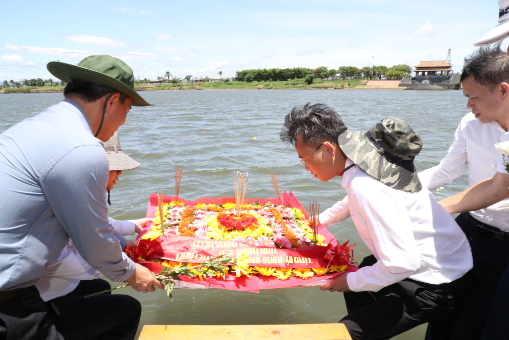 Lãnh đạo tỉnh Hưng Yên thả vòng hoa trên sông Thạch Hãn tỏ lòng tri ân sâu sắc đến các anh hùng liệt sĩ đã anh dũng hi sinh trên dòng sông linh thiêng