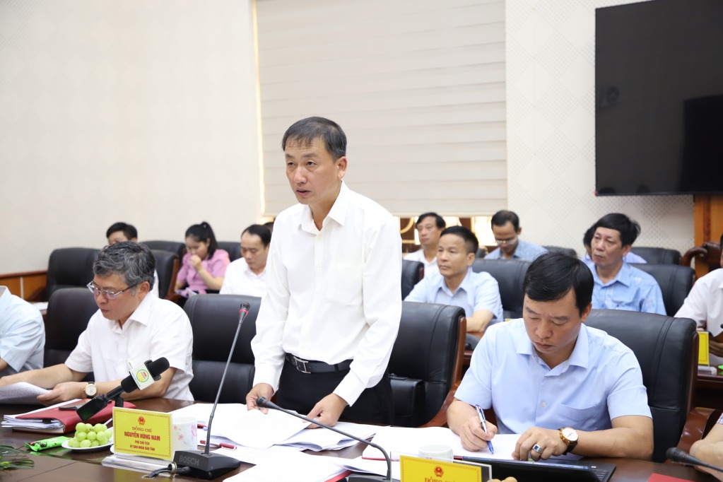 Phó Chủ tịch UBND tỉnh Nguyễn Hùng Nam báo cáo với đoàn công tác tại buổi làm việc