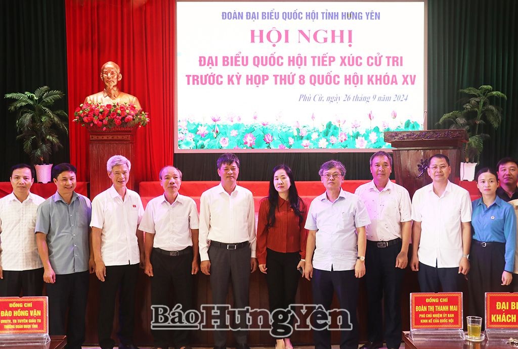 Ngày 26/9, Đoàn đại biểu Quốc hội (ĐBQH) tỉnh gồm các đồng chí: Đào Hồng Vận, Ủy viên Ban Thường vụ Tỉnh ủy, Trưởng ban Tuyên giáo Tỉnh ủy, Trưởng Đoàn ĐBQH tỉnh; Đoàn Thị Thanh Mai, Phó Chủ nhiệm Ủy ban Kinh tế của Quốc hội tiếp xúc cử tri huyện Phù Cừ trước Kỳ họp thứ 8, Quốc hội khóa XV. Cùng dự có các đồng chí: Lê Xuân Tiến, Ủy viên Ban Thường vụ Tỉnh ủy, Phó Chủ tịch Thường trực HĐND tỉnh; Nguyễn Duy Hưng, Phó Chủ tịch UBND tỉnh.