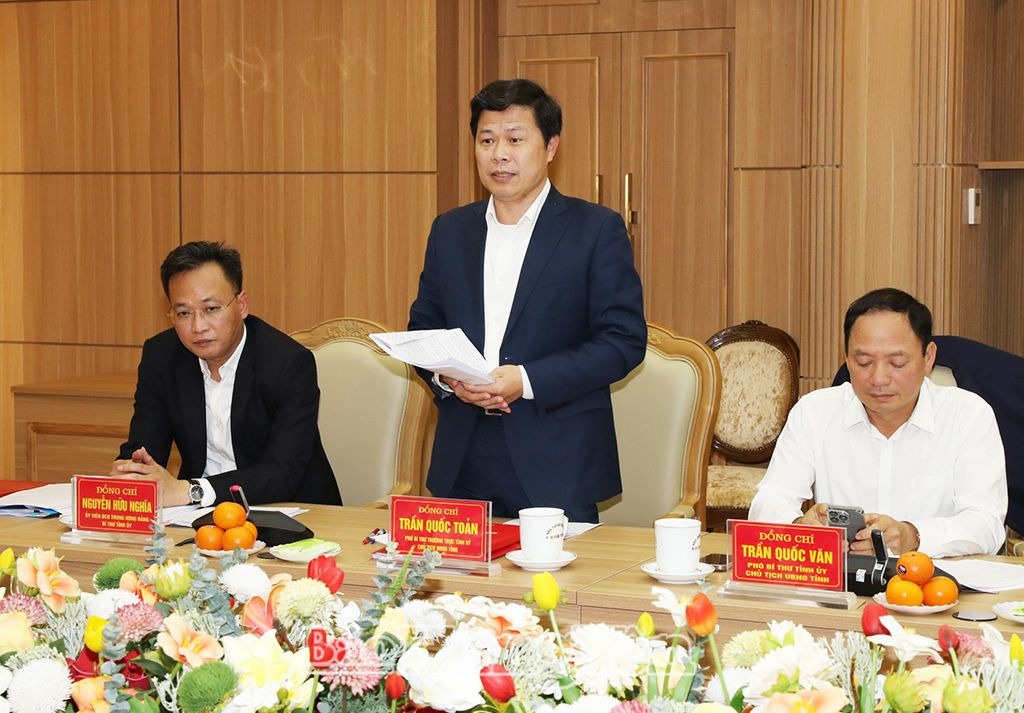 Tiếp và làm việc với Đoàn kiểm tra có các đồng chí: Nguyễn Hữu Nghĩa, Ủy viên BCH Trung ương Đảng, Bí thư Tỉnh ủy; Trần Quốc Toản, Phó Bí thư Thường trực Tỉnh ủy, Chủ tịch HĐND tỉnh; Trần Quốc Văn, Phó Bí thư Tỉnh ủy, Chủ tịch UBND tỉnh; các đồng chí trong Ban Thường vụ Tỉnh ủy; lãnh đạo các ban, sở, ngành tỉnh…