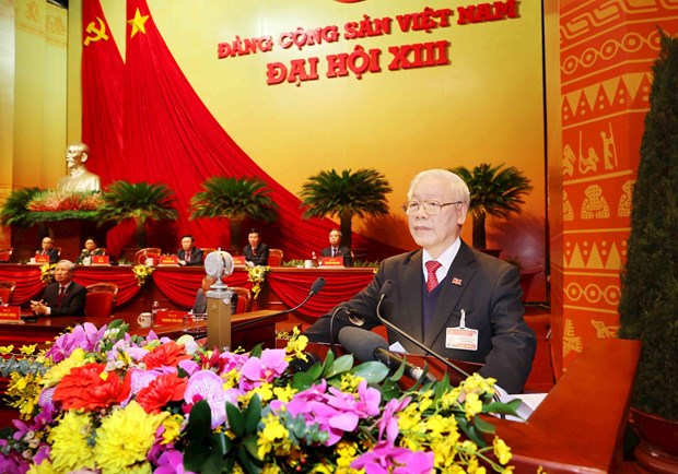 Tổng Bí thư Nguyễn Phú Trọng đọc Diễn văn bế mạc Đại hội Đảng XIII. (Ảnh: TTXVN)
