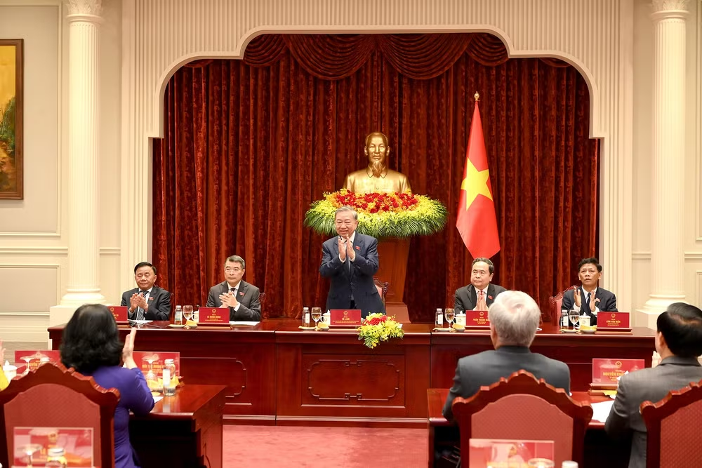 Chiều 20/4, tại Hà Nội, Tổng Bí thư, Chủ tịch nước Tô Lâm và các đồng chí lãnh đạo Đảng, Nhà nước, Mặt trận Tổ quốc Việt Nam gặp mặt các vị đại biểu Quốc hội khóa XVI là người dân tộc thiểu số.
