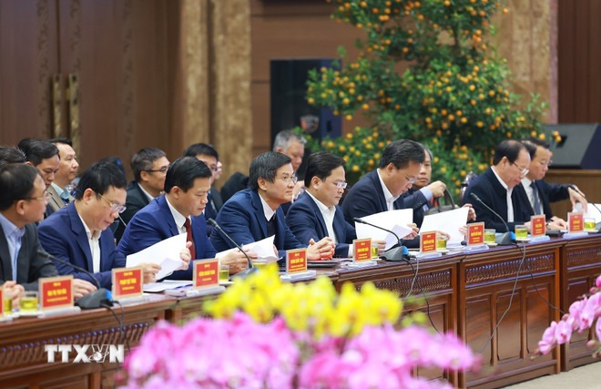 Trong đó, khẩn trương cụ thể hóa, xây dựng kế hoạch hành động thực hiện Nghị quyết 01, 02 năm 2025 của Chính phủ; tập trung tháo gỡ thể chế; hoàn thiện, đi vào vận hành bộ máy tổ chức mới; xây dựng kế hoạch hành động thực hiện nghị quyết của Bộ Chính trị và chương trình, hành động của Chính phủ thực hiện Nghị quyết 57 về đột phá phát triển khoa học, công nghệ, đổi mới sáng tạo và chuyển đổi số quốc gia; xây dựng cơ chế, chính sách huy động mọi nguồn lực cho phát triển; tích cực, chủ động, hiệu quả phát triển kết nối kinh tế vùng, nhất là kết nối giao thông, với việc thúc đẩy các dự án giao thông hiện có và triển khai các dự án mới, đặc biệt là xây dựng, triển khai các dự án chống ô nhiễm không khí, khắc phục ách tắc giao thông, làm sống lại các dòng sông “chết”…