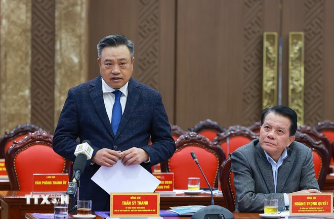 Chủ tịch Ủy ban Nhân dân thành phố Hà Nội Trần Sỹ Thanh phát biểu. (Ảnh: Dương Giang/TTXVN)