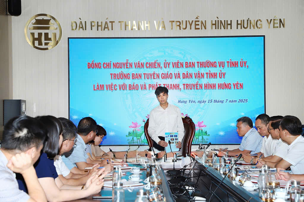 Phát biểu tại buổi làm việc, đồng chí Trưởng ban Tuyên giáo và Dân vận Tỉnh ủy Nguyễn Văn Chiến ghi nhận những nỗ lực của Báo và Phát thanh, Truyền hình Hưng Yên vượt qua những khó khăn ban đầu, đưa hoạt động truyên truyền sớm đi vào nền nếp. Đồng chí chia sẻ những khó khăn hiện nay sau hợp nhất, đồng thời gợi mở một số giải pháp như tăng chuyên trang, tận dụng nền tảng số để công tác tuyên truyền hiệu quả hơn, tăng thu nhập cho cán bộ, viên chức, người lao động của cơ quan.
