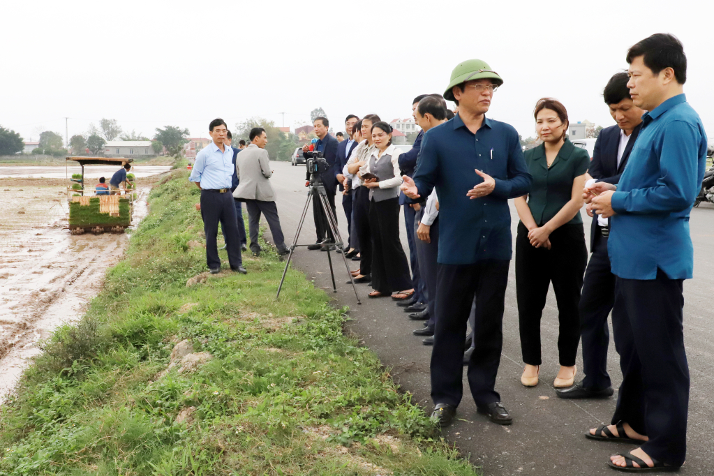 Đồng chí Phó Bí thư Thường trực Tỉnh ủy, Chủ tịch HĐND tỉnh Trần Quốc Toản và đoàn đã đến kiểm tra, động viên sản xuất tại xã Nguyễn Trãi- địa phương điển hình của huyện Ân Thi trong việc dồn thửa đổi ruộng, tích tụ ruộng đất, đưa các giống lúa mới vào sản xuất, cấy mạ khay bằng máy…