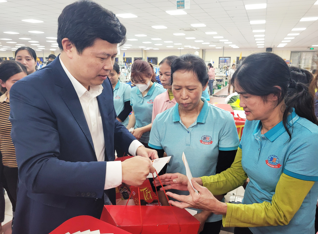 Đồng chí Phó Bí thư Thường trực Tỉnh ủy, Chủ tịch HĐND tỉnh Trần Quốc Toản và các đại biểu đã trao 47 suất quà tặng công nhân, người lao động của Công ty, mỗi suất quà gồm 500 nghìn đồng tiền mặt và quà Tết trị giá 250 nghìn đồng.