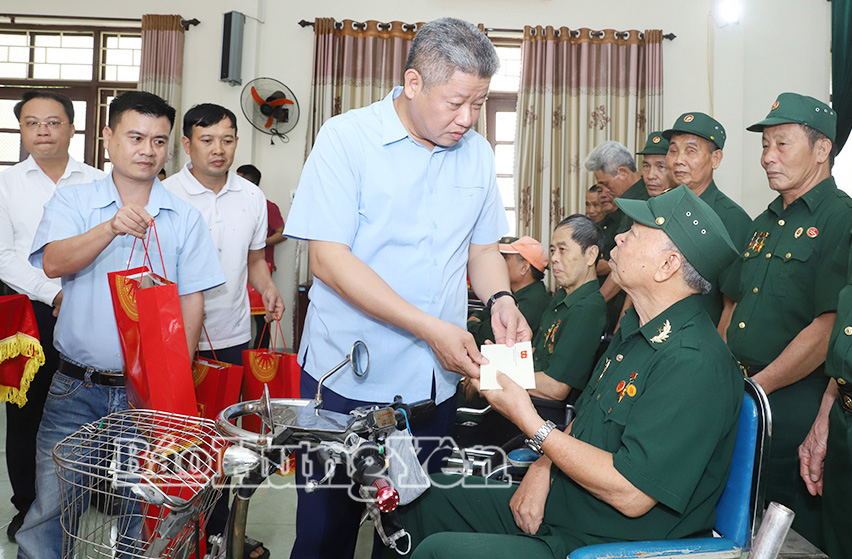 Đồng chí Phó Bí thư Tỉnh ủy, Chủ tịch UBND tỉnh trân trọng trao các phần quà của Tổng Bí thư, Chủ tịch nước Tô Lâm và quà của Tỉnh ủy, HĐND, UBND, Ủy ban MTTQ Việt Nam tỉnh tặng các thương binh, bệnh binh. Đồng chí ân cần thăm hỏi sức khỏe, chia sẻ những khó khăn, mất mát, nỗi đau thương tật của các thương binh, bệnh binh nặng đang được chăm sóc tại Trung tâm; tri ân những đóng góp, hy sinh của các thương, bệnh binh trong sự nghiệp đấu tranh bảo vệ Tổ quốc.