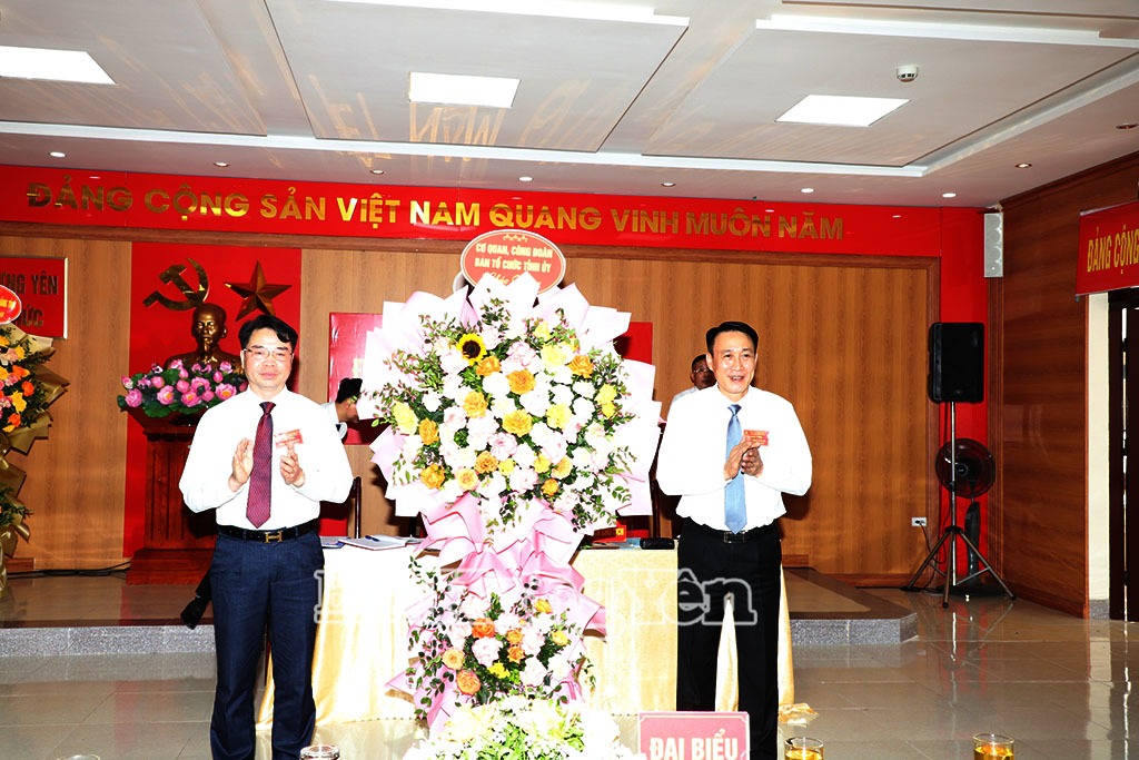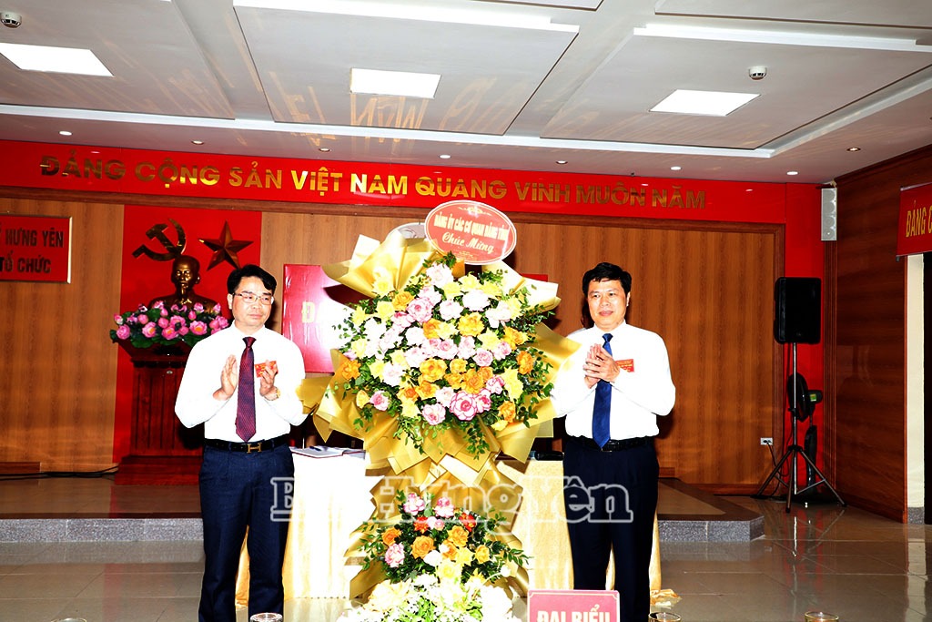 Đồng chí Phó Bí thư Thường trực Tỉnh ủy, Chủ tịch HĐND tỉnh Trần Quốc Toản tặng hoa chúc mừng Đại hội