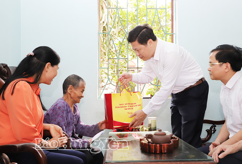 Tại Trung tâm Điều dưỡng, chăm sóc người có công tỉnh (phường Phố Hiến), đồng chí Trần Quốc Toản, Phó Bí thư Thường trực Tỉnh ủy, Chủ tịch Ủy ban MTTQ Việt Nam tỉnh đã đến thăm, tặng quà các ông: Dương Thanh Hồng, sinh năm 1952, thường trú tại phường Lê Đại Hành (thành phố Hải Phòng), thương binh loại A hạng ¼, tỷ lệ thương tật 81%; Lưu Ngọc Thanh, sinh năm 1942, thường trú tại xã Nguyễn Văn Linh, bệnh binh 71%, thương binh hạng 4/4, nhiễm chất độc hóa học loại 2, sống cô đơn không nơi nương tựa. Đồng chí Phó Bí thư Thường trực Tỉnh ủy, Chủ tịch Ủy ban MTTQ Việt Nam tỉnh đã ân cần thăm hỏi tình hình sức khoẻ các đồng chí thương, bệnh binh; bày tỏ lòng trân trọng những đóng góp của các đồng chí cho sự nghiệp đấu tranh giành độc lập của dân tộc. Đồng thời đề nghị các sở, ngành, địa phương và Trung tâm Điều dưỡng, chăm sóc người có công tỉnh luôn quan tâm giúp đỡ các gia đình chính sách để kịp thời động viên và chia sẻ với những đau thương mất mát do chiến tranh để lại. Sở Nội vụ phối hợp với Sở Y tế và các bệnh viện có phương án điều trị chuyên sâu cho các thương, bệnh binh, người có công với cách mạng.